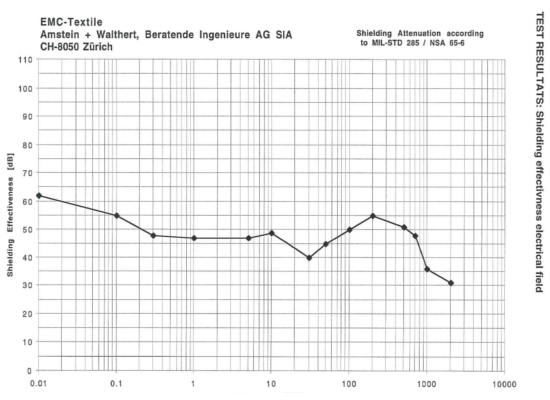 - Des doublures de vêtements de protection contre les hautes fréquences. A ce titre, l'armée Suisse utilise ce tissu de protection pour ses militaires, de même que les techniciens chargés de faire des mesures d'émissions de hautes fréquences à coté des antennes émettrices