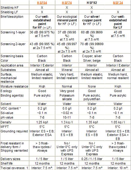 Les peintures YShield® ne contiennent ni solvants toxiques, ni agents plastifiant, ni composants toxiques, mais uniquement des composés organiques volatiles initiaux en très faible quantité afin de respecter les normes de l'habitat écologique les plus sévères. Les graphiques d'atténuation sont certifiés par l'Université de Munich des Forces Armées Allemandes.