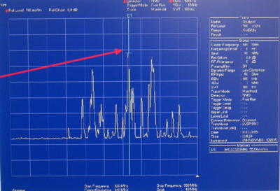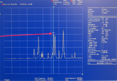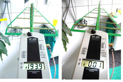 Mesure des hautes fréquences après application de la peinture YShield® : puissance reçue = 0.2 µW/m2